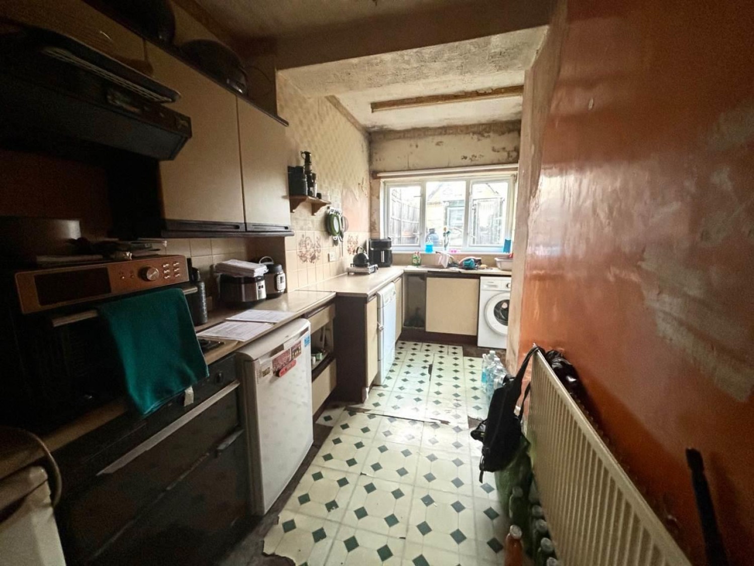 Upon entering, you are greeted by two reception rooms & an extended kitchen that is in need of renovation.